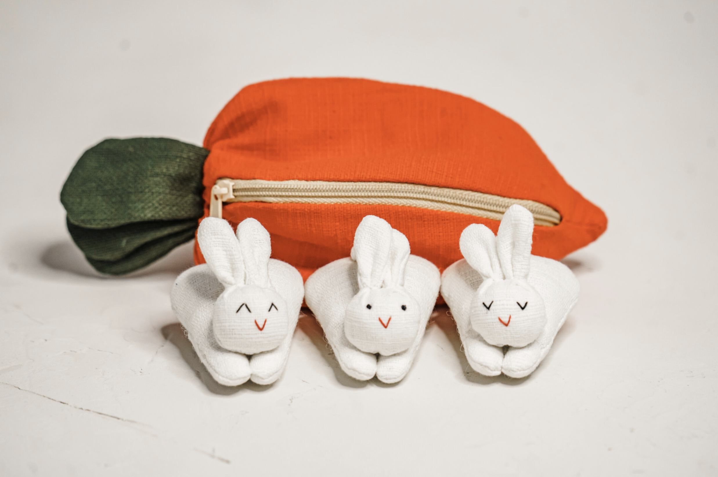 These soft toys are the perfect solution to this dilemma. Each pod unzips to reveal either three monkeys or three bunnies. They’re handmade and small enough for little fingers, but large enough to not be a choking hazard. We love the special details like each critter having it’s own facial expression.