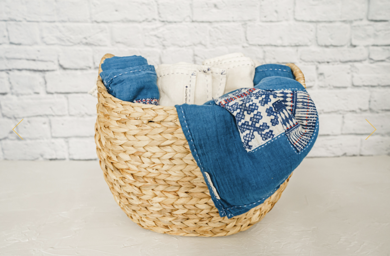 Lovingly hand stitched in Thailand by the Aria sewing co-op. The patches sewn on each blanket are one-of-a-kind pieces from vintage Hill Tribe skirts. Each one will have a slightly different pattern and be unique to your little one. Choose either the natural or indigo dyed.