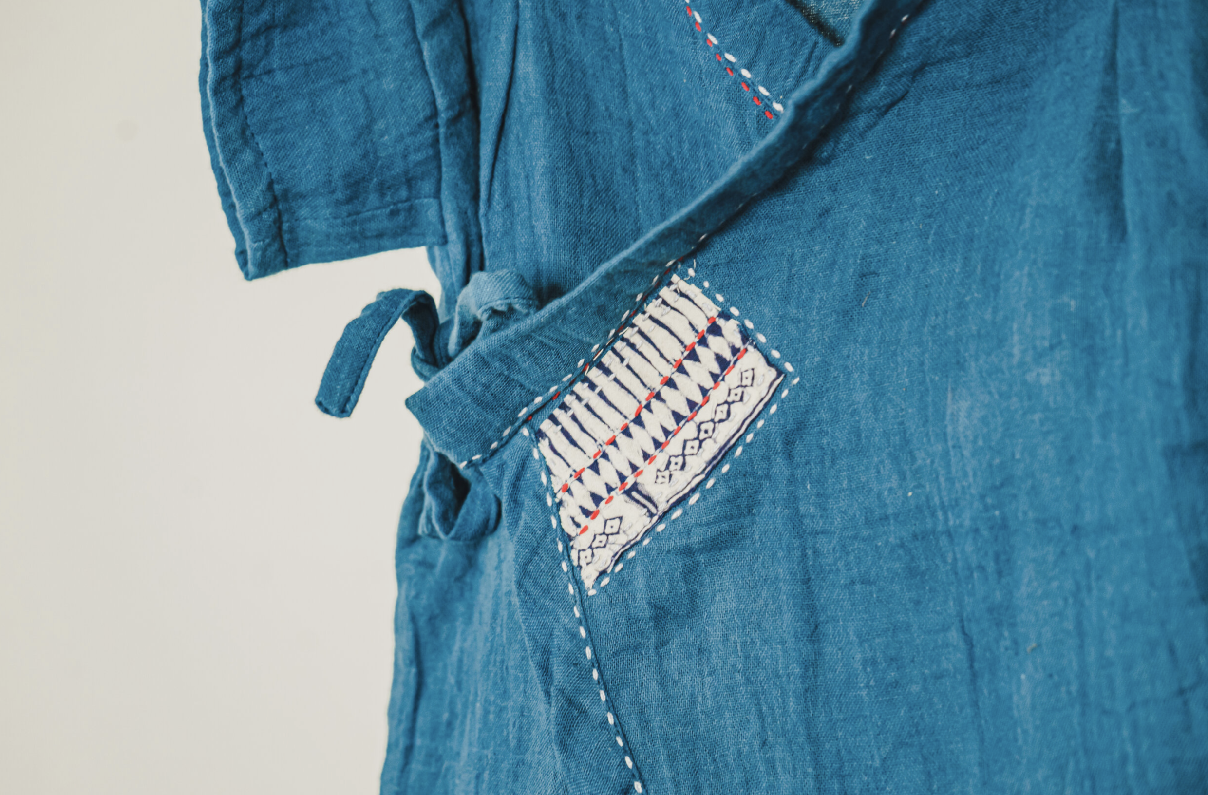Hand-made in Thailand. 100% dyed indigo with hand-stitched cotton thread.