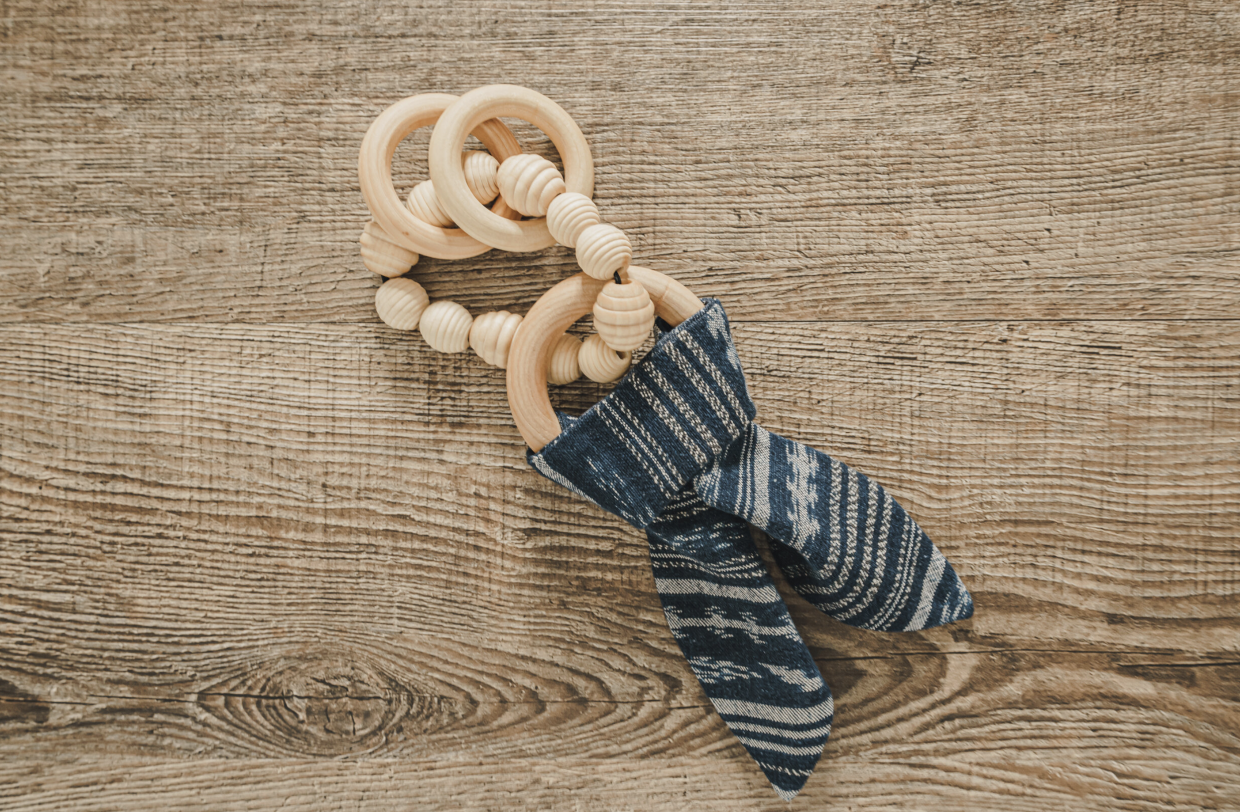We love these hand-made wooden tethers because they’re a safer alternative to plastic or silicone. The wooden beads are food-grade and make just the right amount of noise to not annoy the adults in the room. And, the “bunny ears” are easily removable when they need a bit of freshening up.