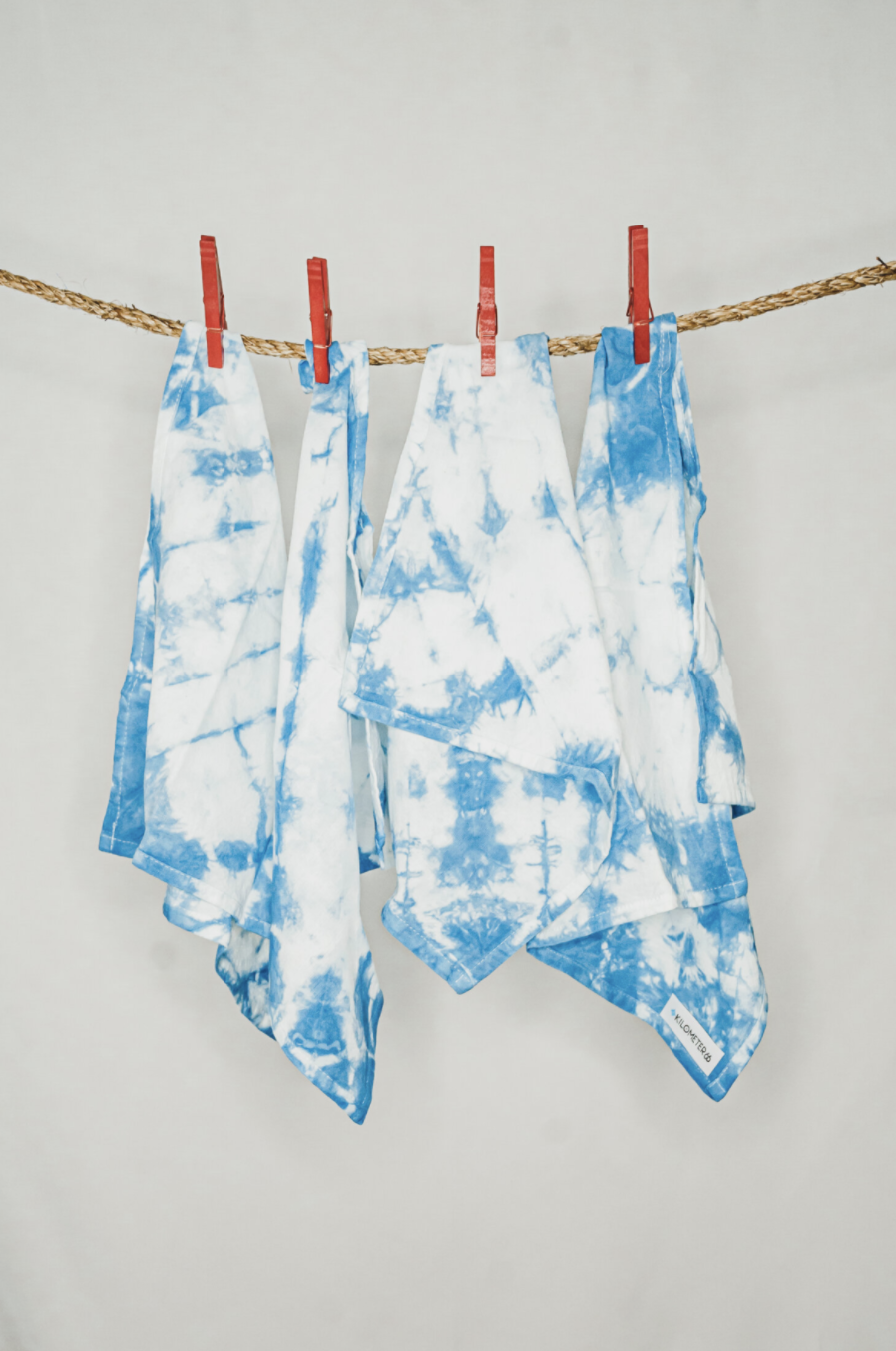 The Shibori line of Tea Towels, Napkins, and Table Runners are 100% cotton each hand-dyed by Syrian Refugees here in the DMV. No two are alike.