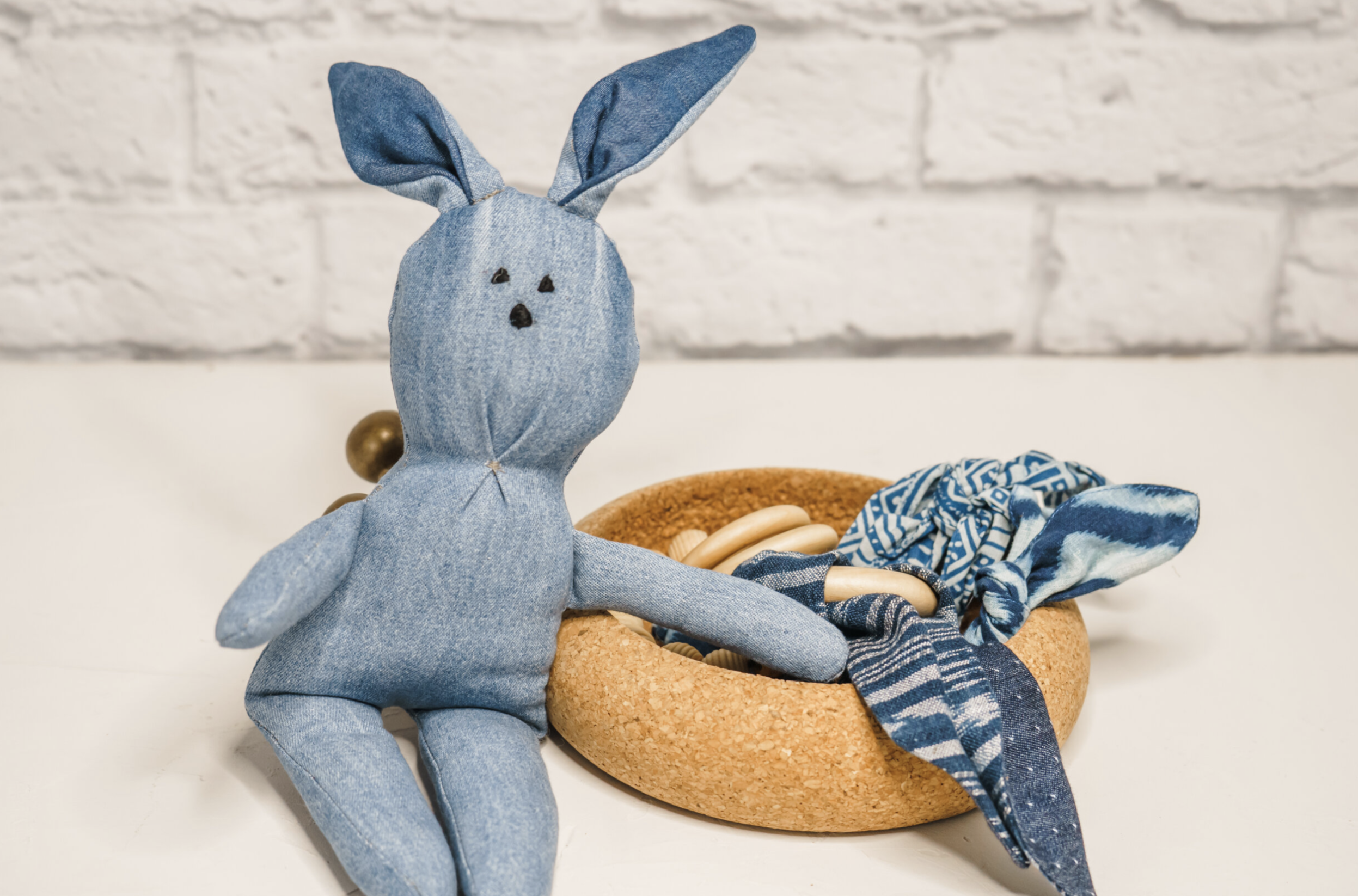 These bunnies are hand-made out of up-cycled chambray denim, and they’re just the right size for little hands to hold and tug. They’ve got two-toned floppy ears, hand-stitched features, and a lot of soul.
